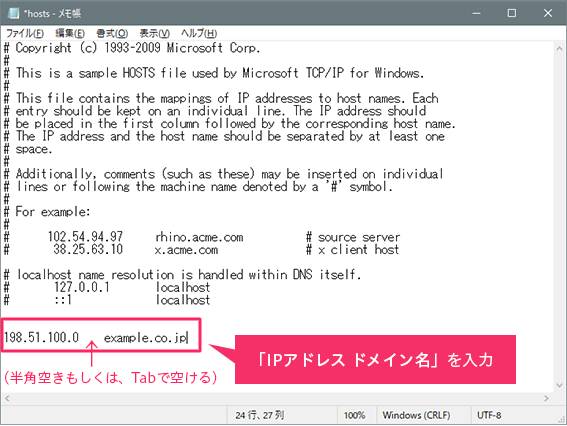 ホストファイルを編集する手順はどうなっていますか