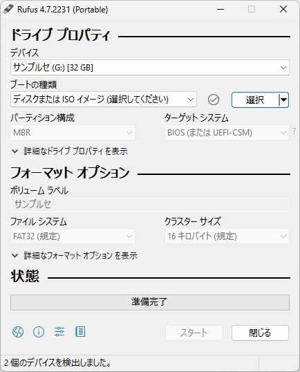 Rufusを使ったWindows ISOのUSB書き込み方法