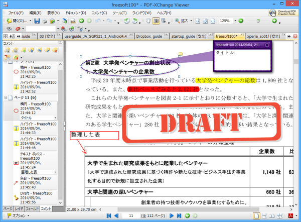 また、注釈のプロパティを変更することで、注釈の色やフォント、線の太さなどを調整することができます。これにより、注釈をより目立たせたり、特定の情報を強調表示することができます。PDF XChange Viewerの注釈機能は、PDFファイルをより効果的に活用するための強力なツールです。