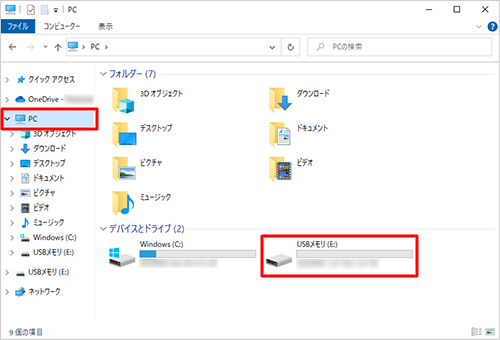 USBメモリをパソコンに接続していることを確認し、ファイルエクスプローラーでUSBメモリのドライブを開きます。USBメモリのドライブが表示されない場合は、パソコンに正しく接続されているかを確認してください。USBメモリのドライブが開いたら、保存先のフォルダを選択します。フォルダが存在しない場合は、新規に作成することもできます。