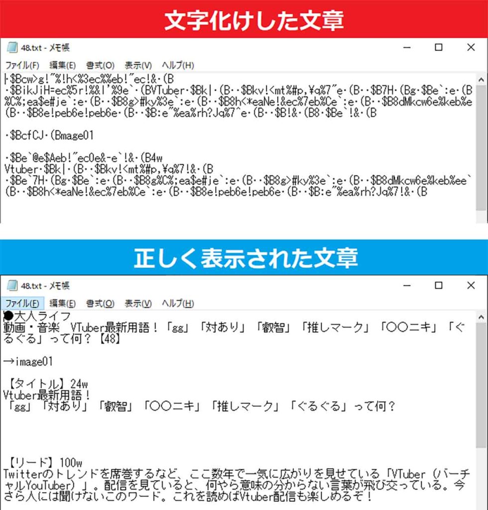 文字化けの主な原因は、ファイルの文字コードとメモ帳のデフォルトの文字コード設定が一致していないことです。たとえば、UTF-8で保存されたファイルをShift JISとして開くと、文字化けが発生します。このような場合、正しい文字コードを選択することで問題を解決できます。また、ファイルを別の文字コードで保存し直すことも有効です。
