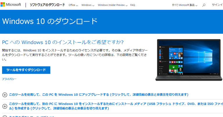Windows10インストールメディア作成ツールのダウンロード方法は?