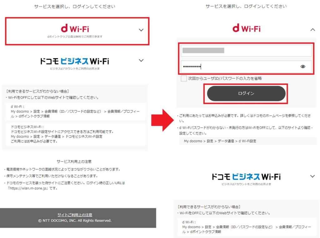 dWi-Fiパスワードの確認方法
